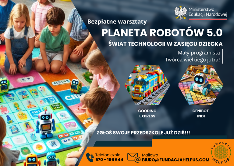 PLANETA ROBOTÓW 5.0! Świat technologii w zasięgu dziecka to wyjątkowa odsłona naszego projektu. Ważna, jak każda dotychczasowa, ważna, jak każda następna, a jednak jedyna – pierwsza, która zagości w przedszkolach powiatu wołomińskiego!